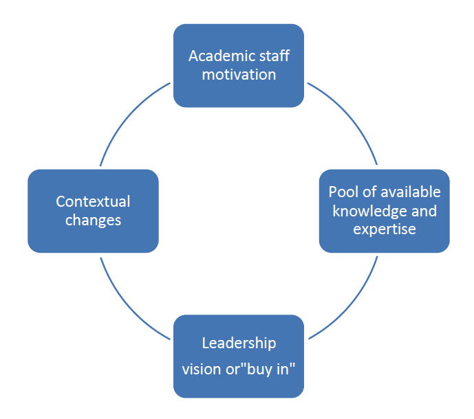 Delft leadership is clear that academics need support to take part in open education. This has materialised in investment in e-learning officers, teaching assistants’ time -in order to help prepare courses to go online-, or even graphic designers to improve MOOC slides given the marketing effect of open education. Delft also provides a range of guidance documents to its academics, so that they “know-how” to participate in open education.