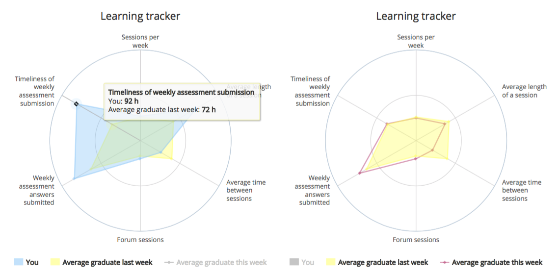 In her research she has shown that feedback on learner behaviour, such as the learner tracker, might lead to changes in a learner’s overall behaviour and not only in the areas they received feedback on.